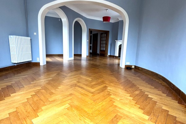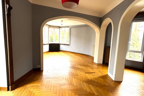 Avenue Brugmann, dans le quartier prisé d\\\’Uccle, à proximité des commerces, des transports en commun et des espaces verts, dans un immeuble Art Déco repris à l’inventaire du patrimoine, offrant un charme architectural unique avec des éléments d’époque bien préservés, cet appartement situé au 3ième étage présente 2 chambres, 1 salle de bain, 2 wc’s, 1 séjour spacieux dans la rotonde, qui permet de bénéficier d’une belle luminosité et d’une vue dégagée. Ce type de configuration donne une sensation d’espace et de fluidité.